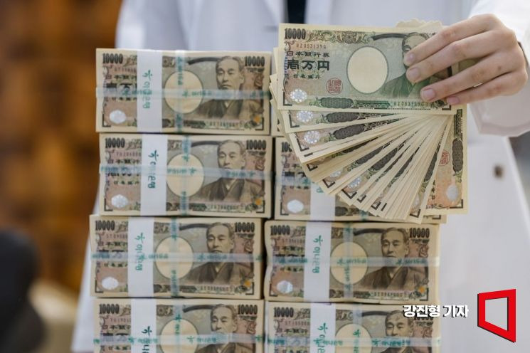 서울 중구 하나은행 위변조대응센터에서 직원이 엔화를 정리하고 있다.